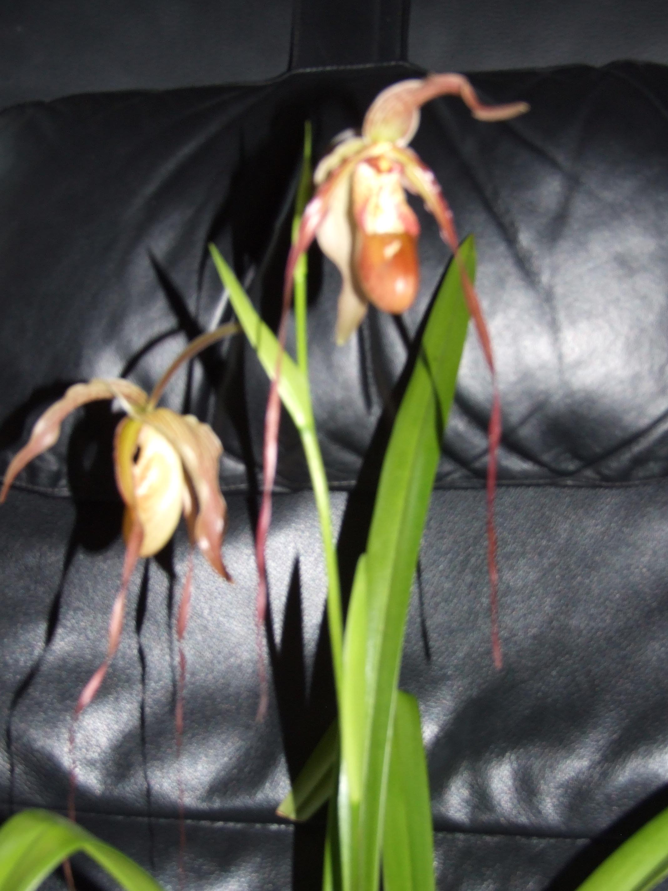 Lady Slippers from the Central and South Americas are called Phragmipedium . Similar to Paphiopedilum except its leaves are more grasslike with larger, more linear-lanceolate leaves held nearly erect.. Generally, they prefer damp to wet acid substrate and acidic water, at a pH as low as 5-6 with higher level of nutrients and they prefer a slightly medium to high ligh intensity to promote flowering . Phragmipedium will do well when the plants are repotted every 6 months / yearly .