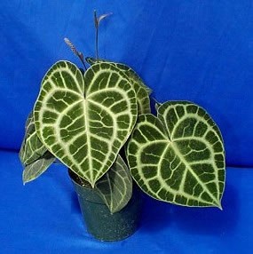 anthurium. Its velvety elongated leaves with white veining can reach up to 3