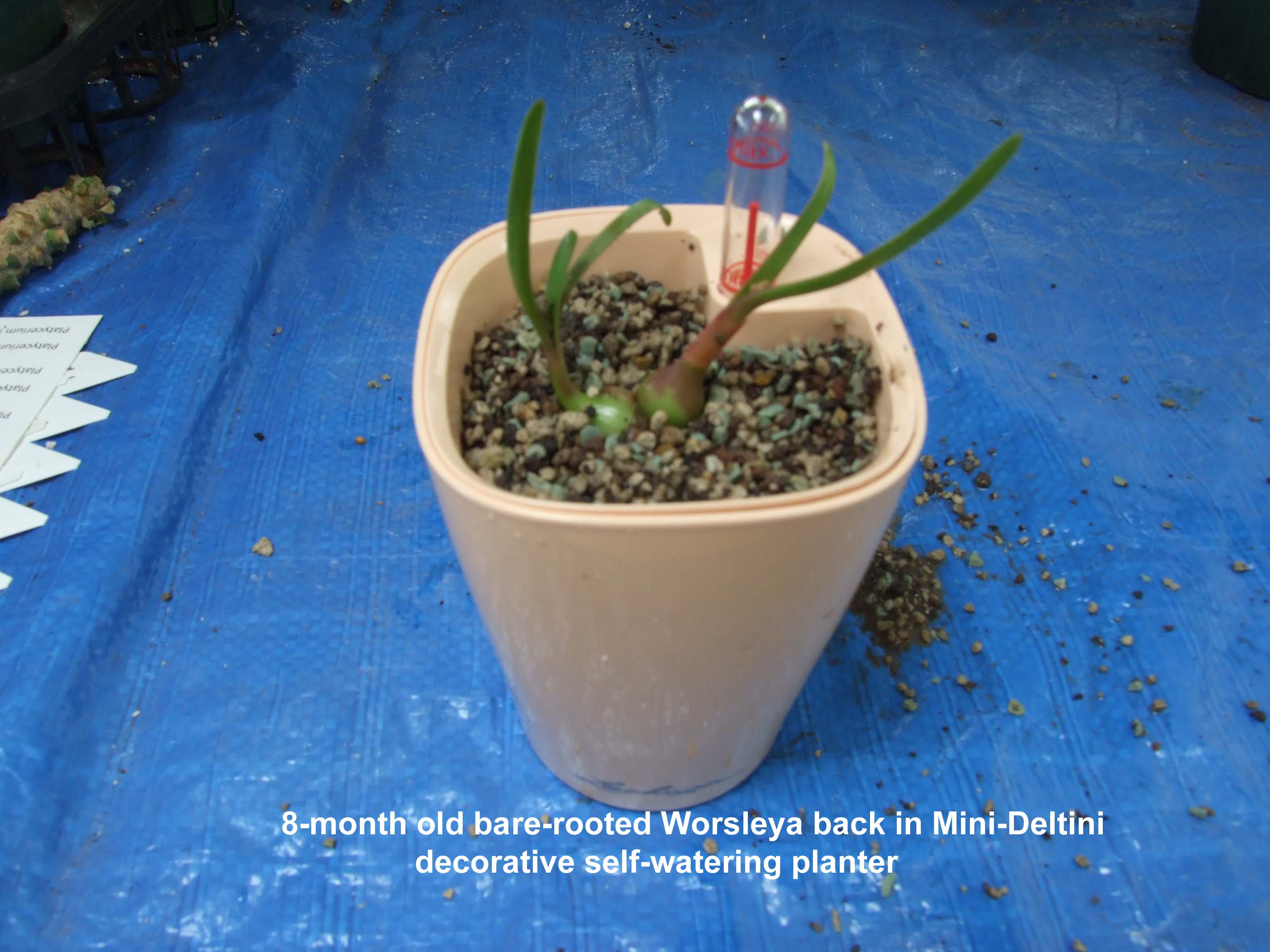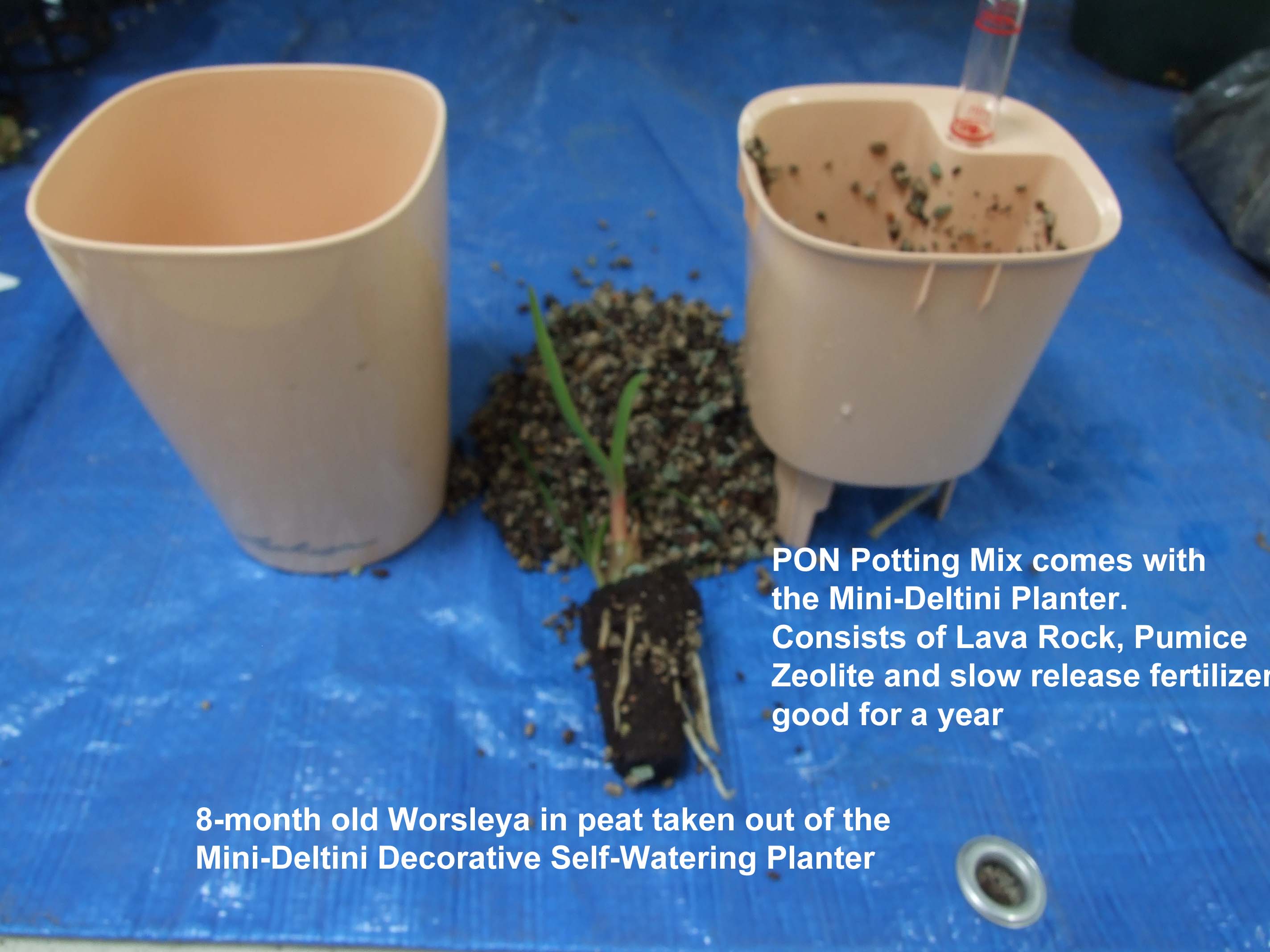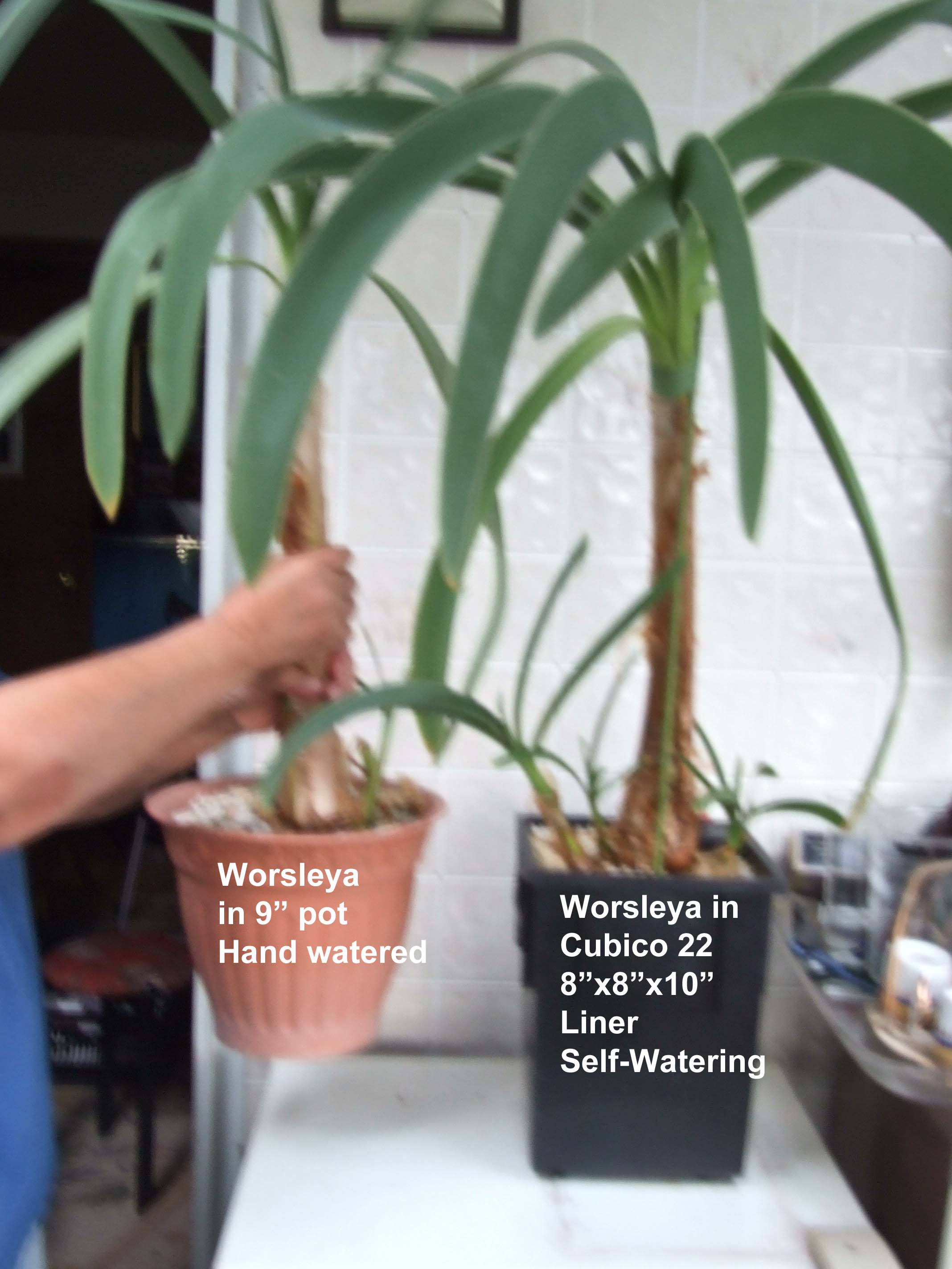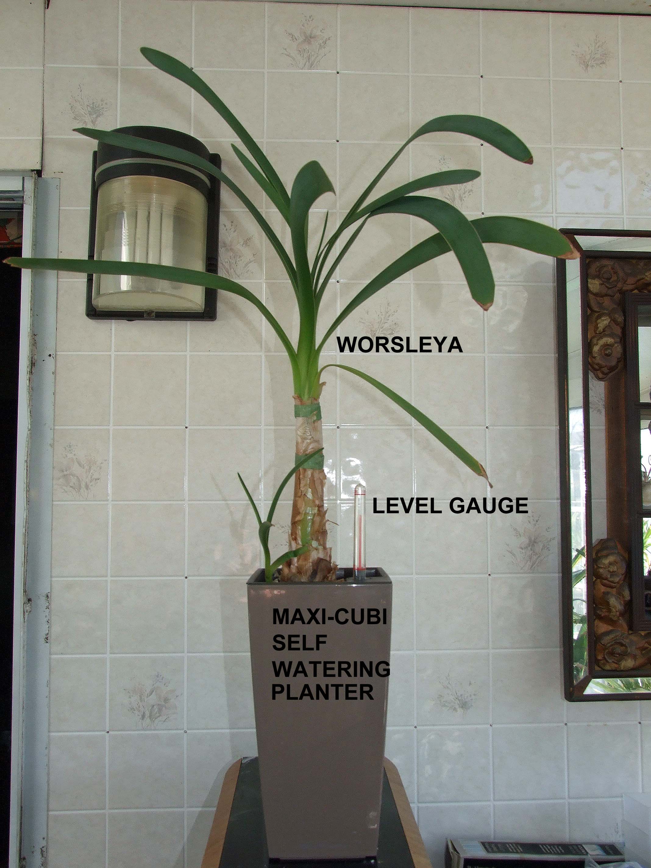 Growing the Worsleya in self-watering planter with the appropriate potting mix would allow the plant to thrive. Its like hiring a full time Master Gardener to take care of plants 24/7 or having a life-time insurance against catastrophic Worsleya failure. Some small Worsleya plants that I've grown are in a Deltini Series and Cube series.. The Mini / Maxi Deltini is a Decorative 2-pots in one self-watering planter. The outer pot is the reservoir and the color coordinated inner pot or liner has the level gauge , wick, and also comes with its own proprietary inert potting mix called PON consisting of pumice, lava rock, zeolite and built-in fertilizer good for a year. By using the self-watering feature(liner w/ the outer pot) Watering is from 6 to 12 weeks depending on how fast the plant consumes the water. Or if need the challenge, just separate the liner from outer pot and treat the liner as a conventional pot and use the other pot with no holes to grow aquatic plants. What I like about the Mini/Maxi-Deltini or the Mini/Maxi Cubico is you can grow anything from Cactus to Aquatic plants- plants from both extreme end of the watering spectrum (dry to wet) using its proprietary PON potting mix.