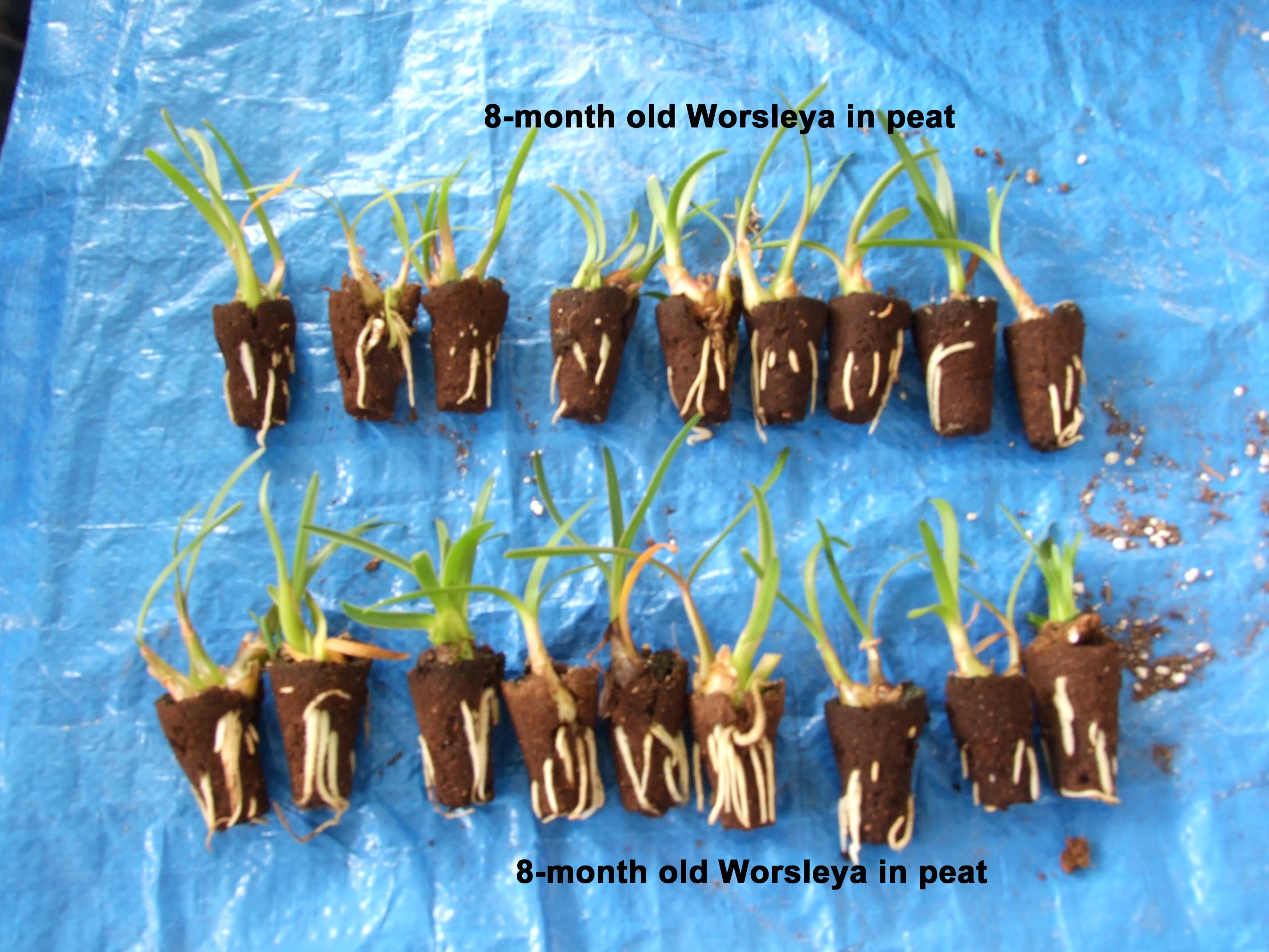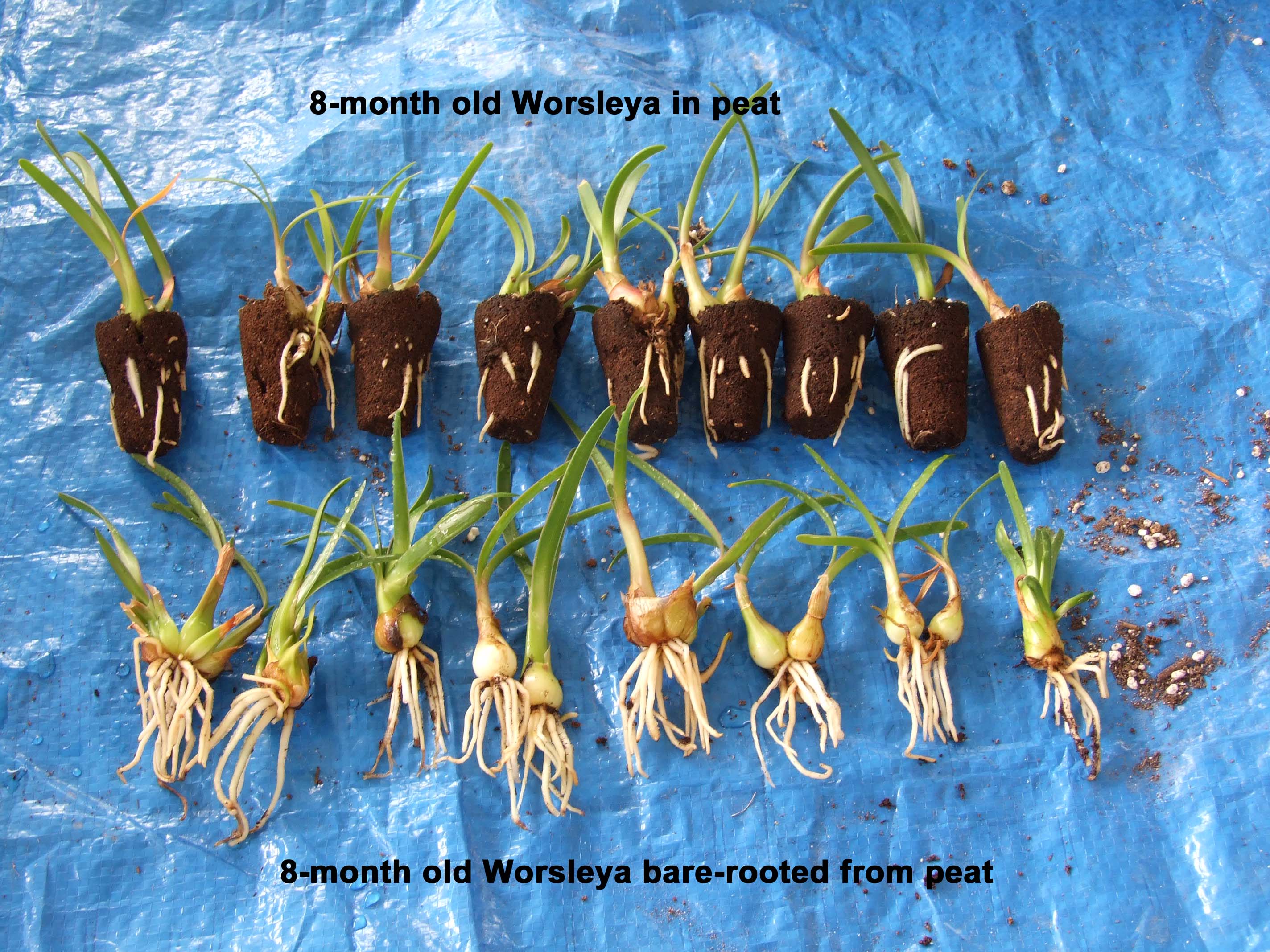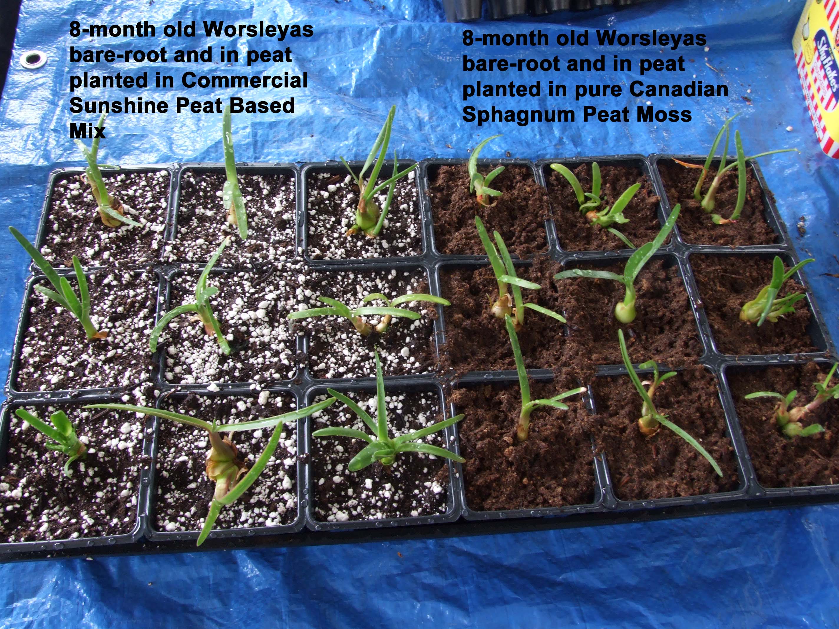 roots are much more numerous and longer on the Worsleyas grown in Canadian Sphagnum.